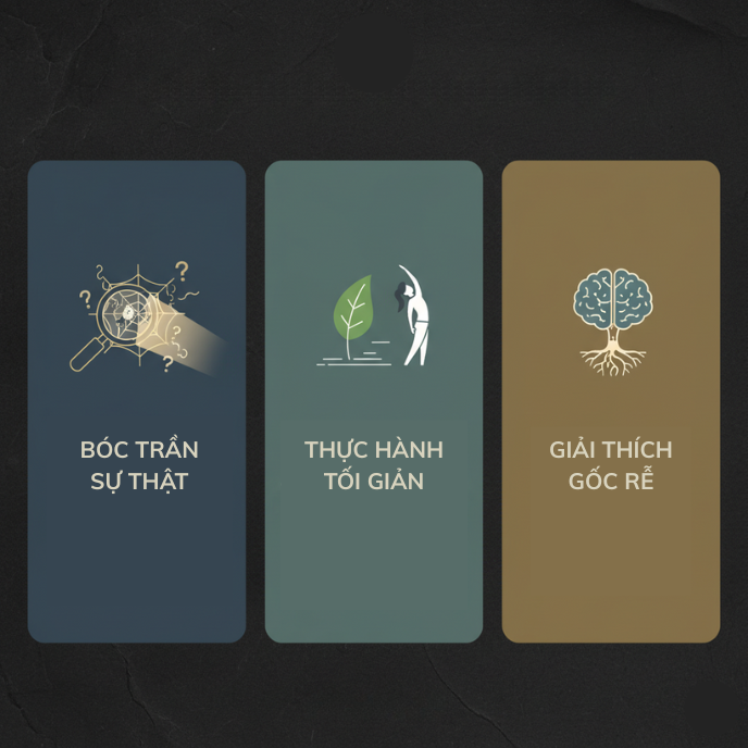 - Giải thích gốc rễ: Diễn giải các vấn đề sức khỏe và cơ chế chữa lành theo nguyên lý cốt lõi một cách dễ hiểu nhất.